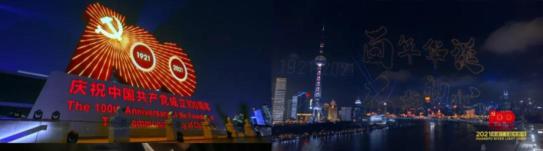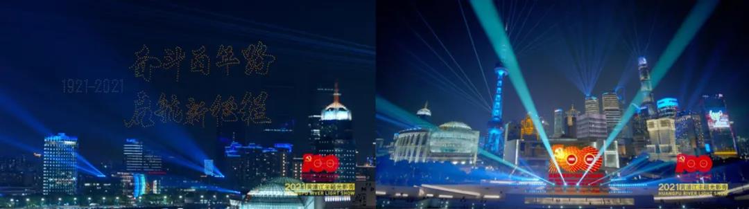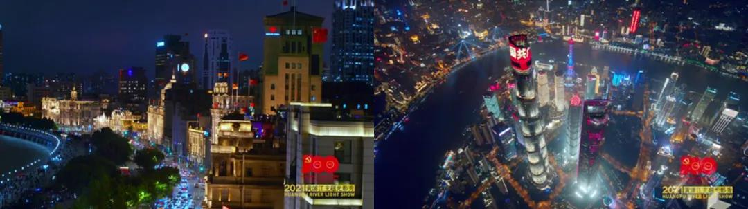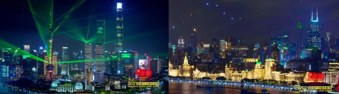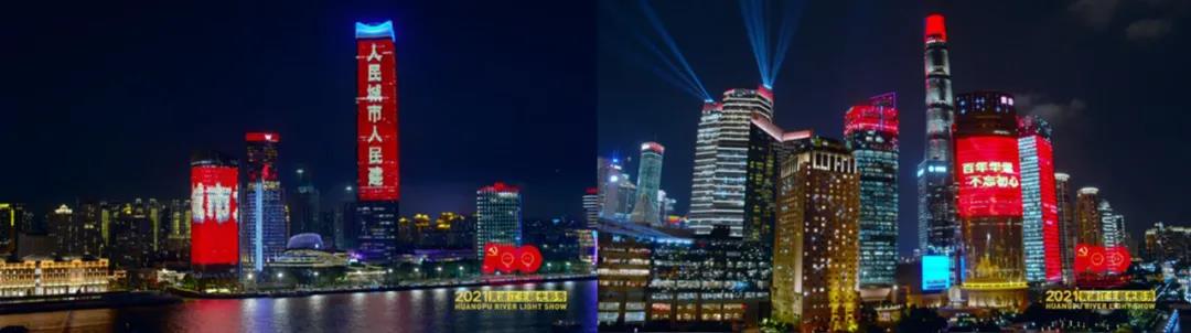 为庆祝中国共产党成立100周年,上海黄浦江两岸上演了一场以“永远跟党走”为主题的光影秀。两岸300多座楼宇,围绕建党百年巨型灯光标识在夜幕下熠熠生辉。