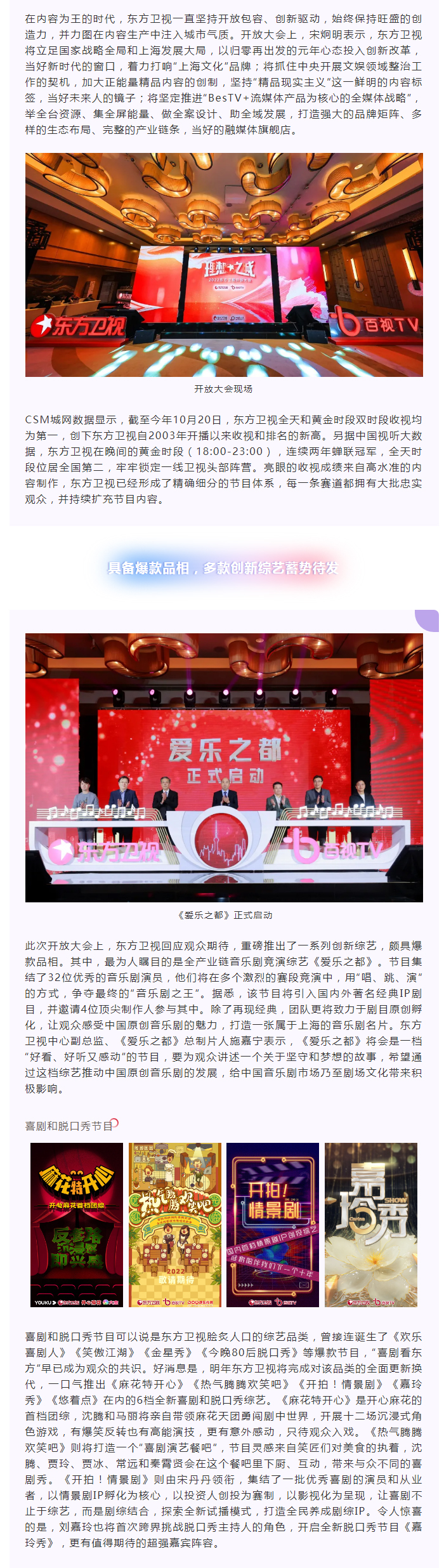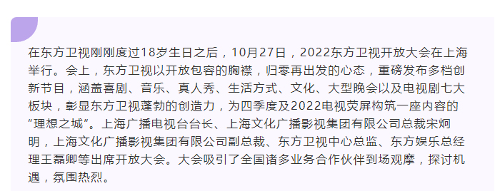 开放共赢,共筑“理想之城” 东方卫视开放大会展现蓬勃创造力