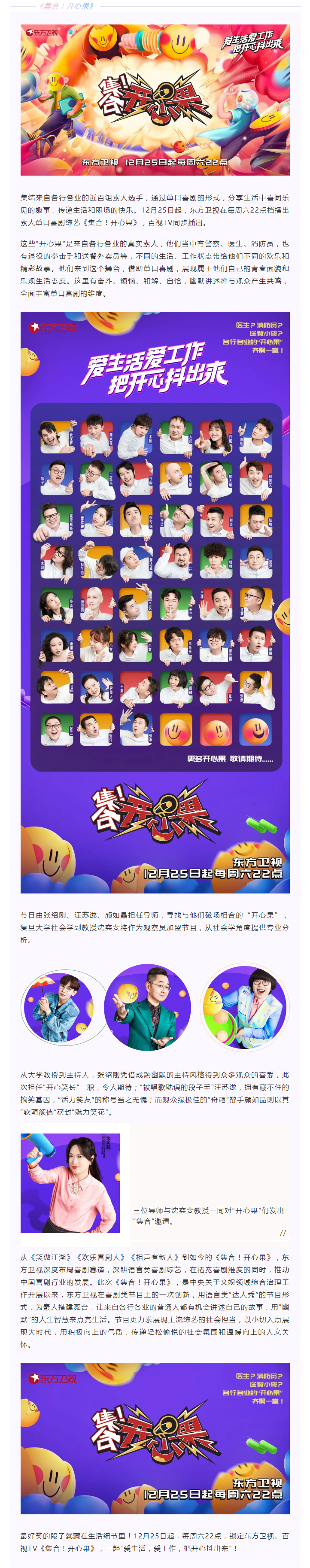 用单口喜剧展现职场人的生活态度 东方卫视、百视TV明起开播《集合!开心果》
