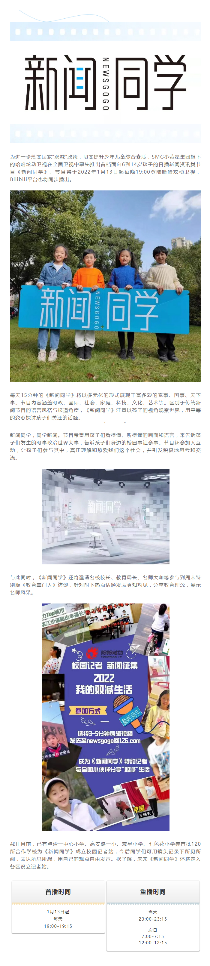“用心做给孩子看”的新闻 《新闻同学》新年开播
