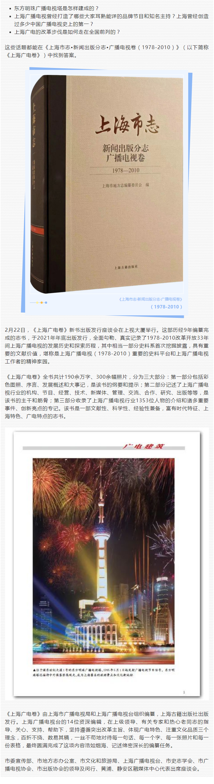 东方明珠是怎么建成的? 190万字的《上海市志·广电卷》里有答案