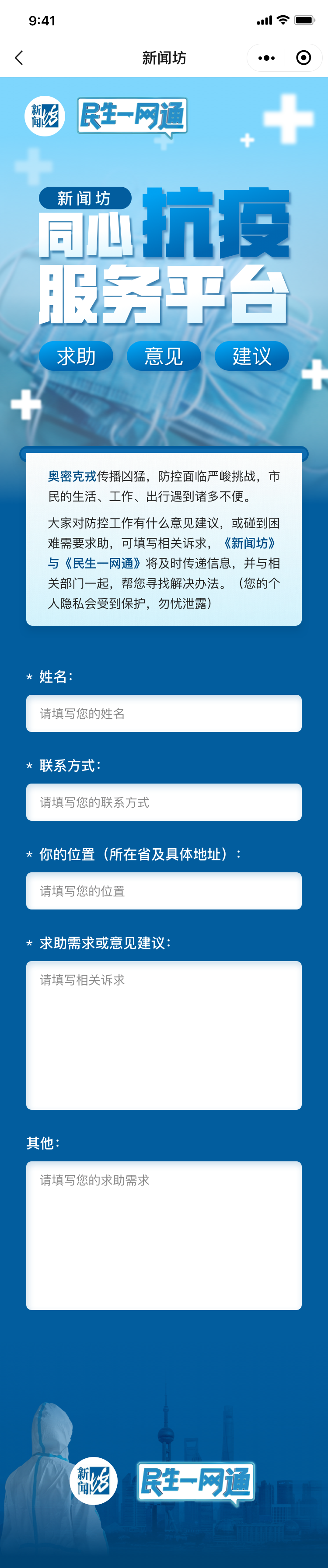 “新闻坊同心抗疫服务平台”