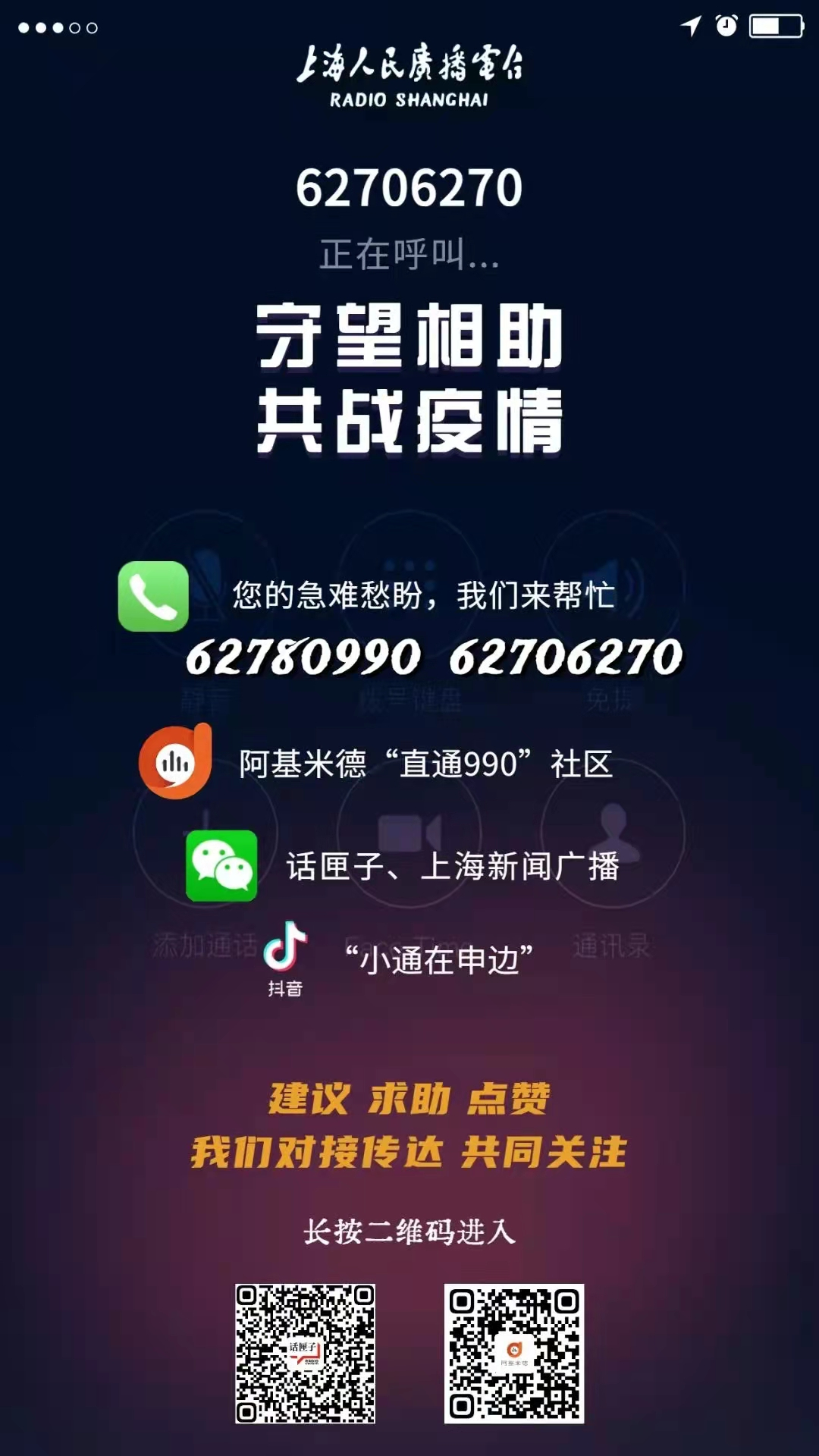 上海电台防疫服务热线