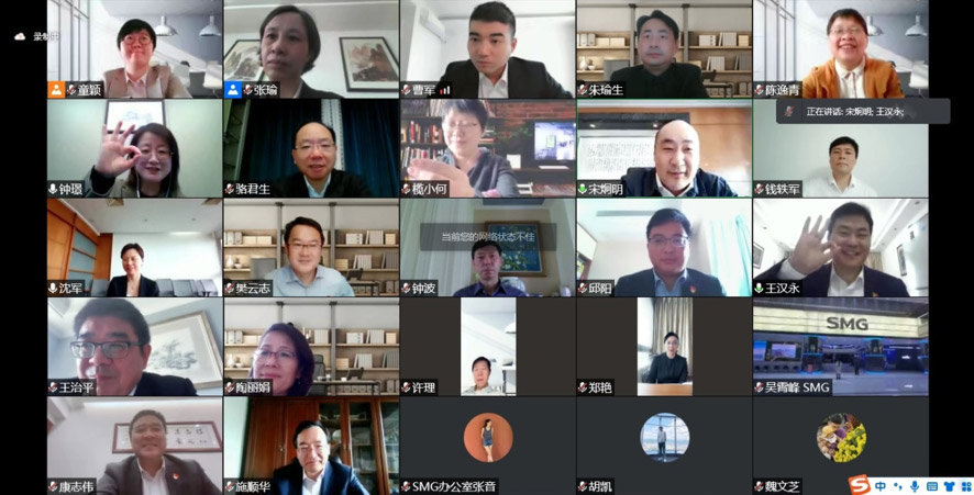 在此次党建共建活动中,集团监事长王治平与招商银行上海分行副书记、纪委书记骆君生,分别介绍交流了SMG和招商银行在党建工作和近阶段抗疫工作中的相关情况。