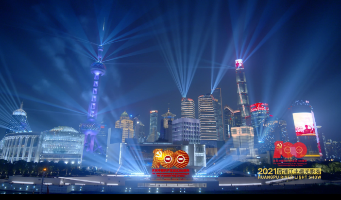 为庆祝建党百年创制的“永远跟党走”浦江光影秀,分《开天辟地》《改天换地》《翻天覆地》《经天纬地》四大篇章。光影秀围绕20.21米高的建党百年华诞巨型灯光艺术标识展开,展现“共襄盛举、喜迎佳节”的盛况。短短两天内全网传播量破亿,相关话题冲上百度热搜第一,成为现象级传播。
