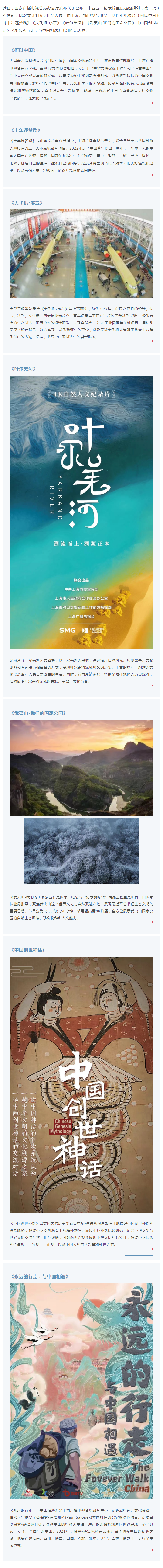 SMG七部纪录片入选第二批“十四五”重点选题