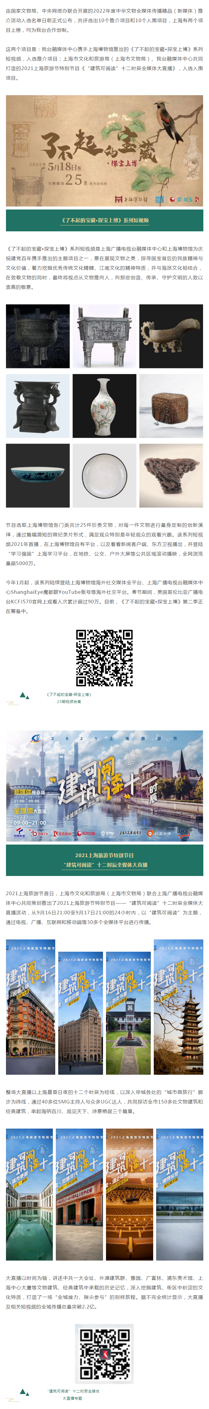 上海广播电视台两个合作项目获2022中华文物全媒体传播精品(新媒体)奖项