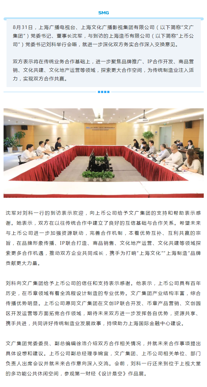 上海广播电视台、上海文广集团与上海造币有限公司共谋发展新局面