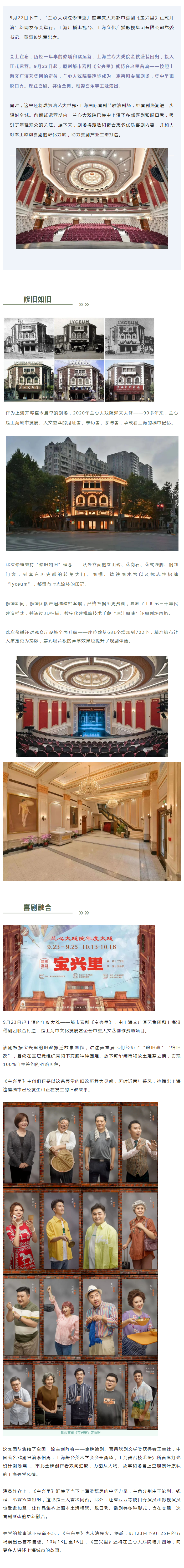 兰心大戏院修缮重开,都市喜剧《宝兴里》9月23日开演