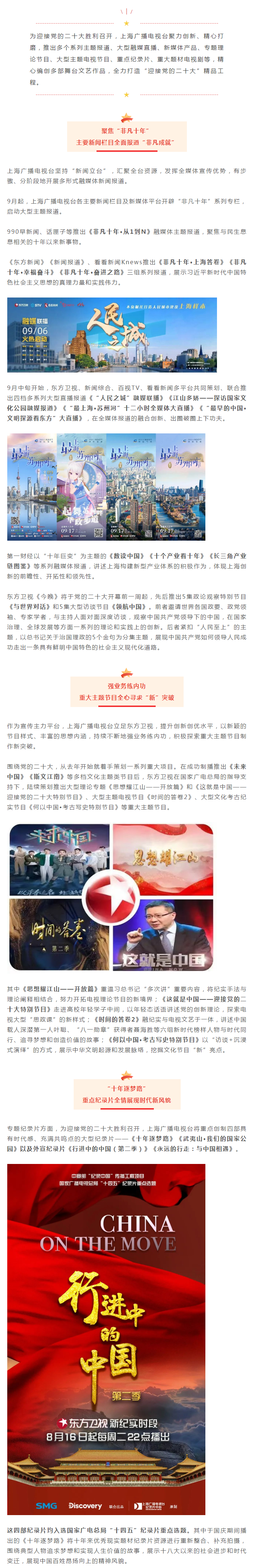 聚力创新精心打磨,上海广播电视台全力打造精品工程喜迎二十大