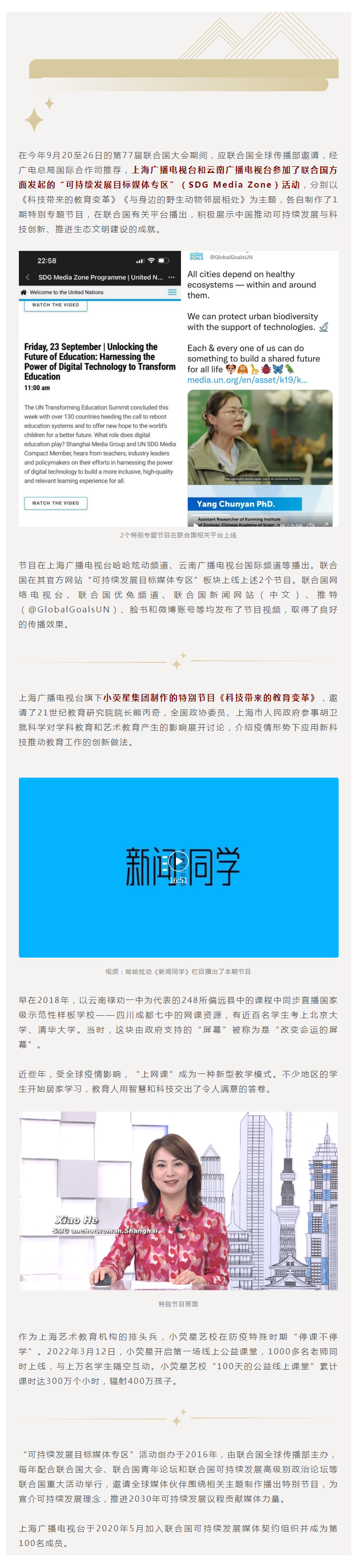 上海广播电视台参加联合国“可持续发展目标媒体专区”活动