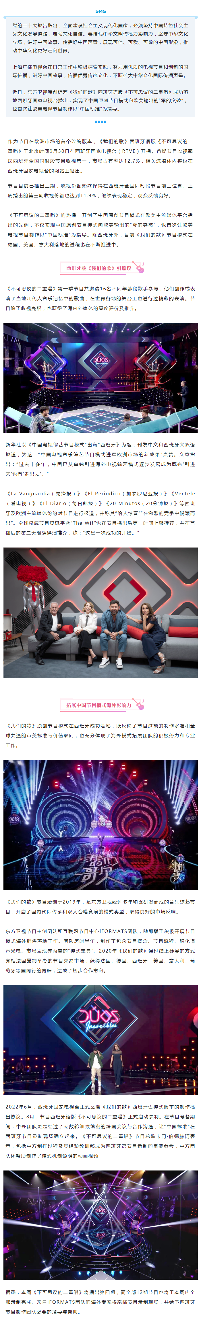 《我们的歌》西班牙版收视亮眼 获中外主流媒体高度评价