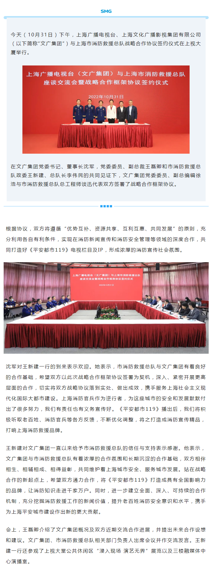 上海广播电视台、上海文广集团与上海市消防救援总队签署战略合作协议