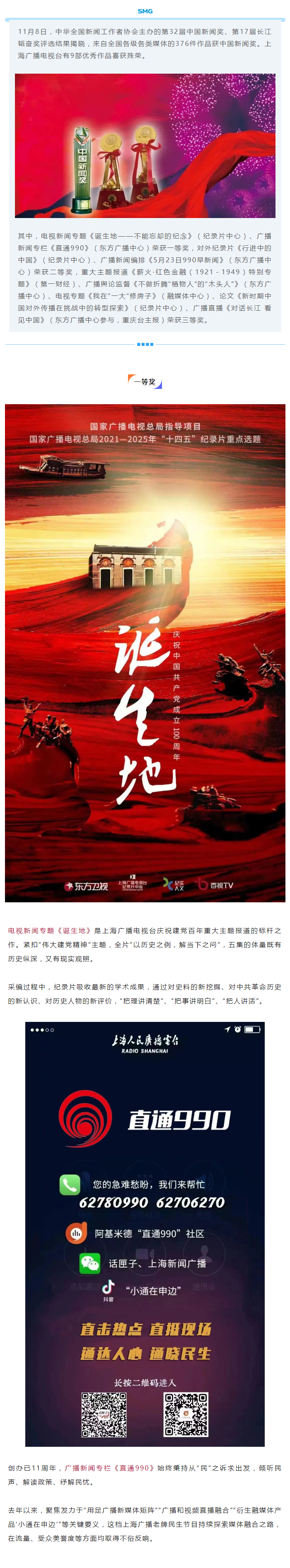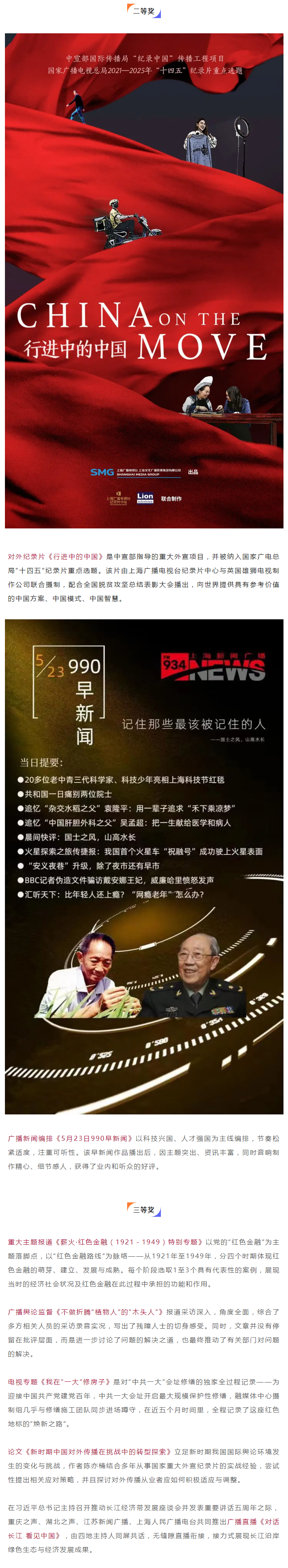 上海广播电视台九部作品荣膺第32届“中国新闻奖”