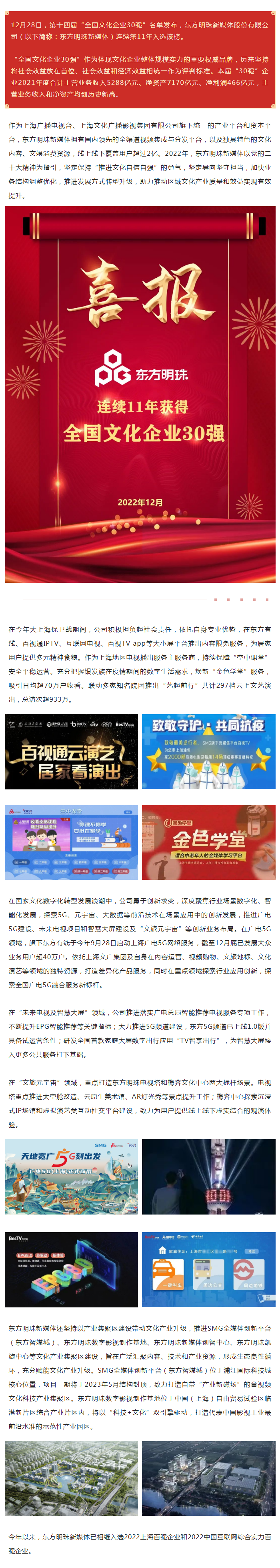 东方明珠新媒体11度蝉联全国文化企业30强