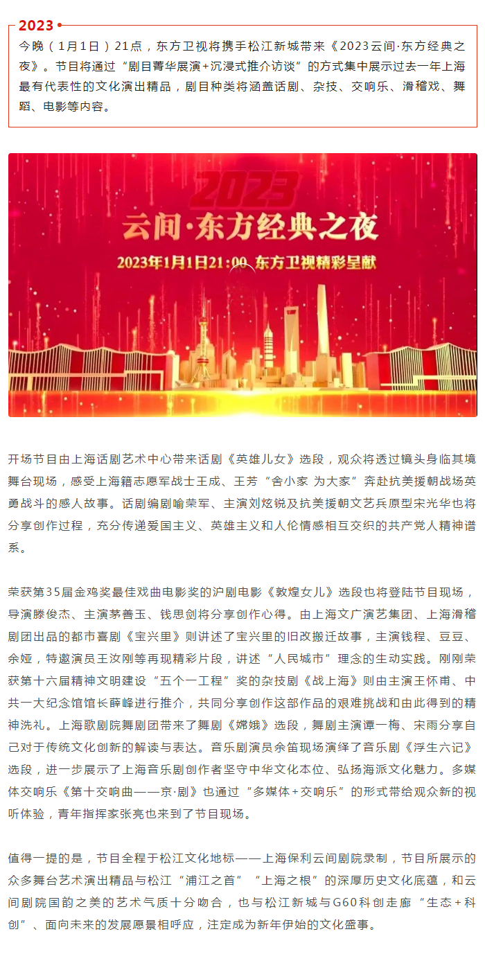 《2023云间·东方经典之夜》东方卫视1月1日晚21点播出