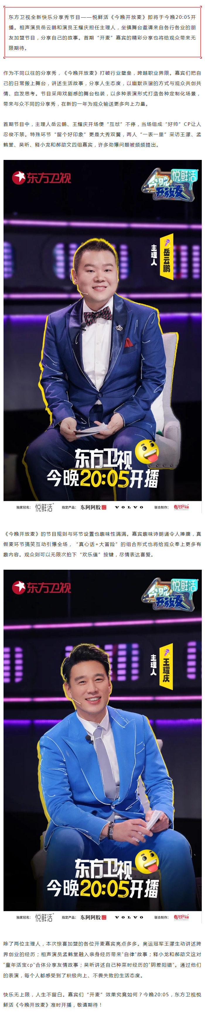 全新快乐分享秀《今晚开放麦》1月15日20:05东方卫视开播