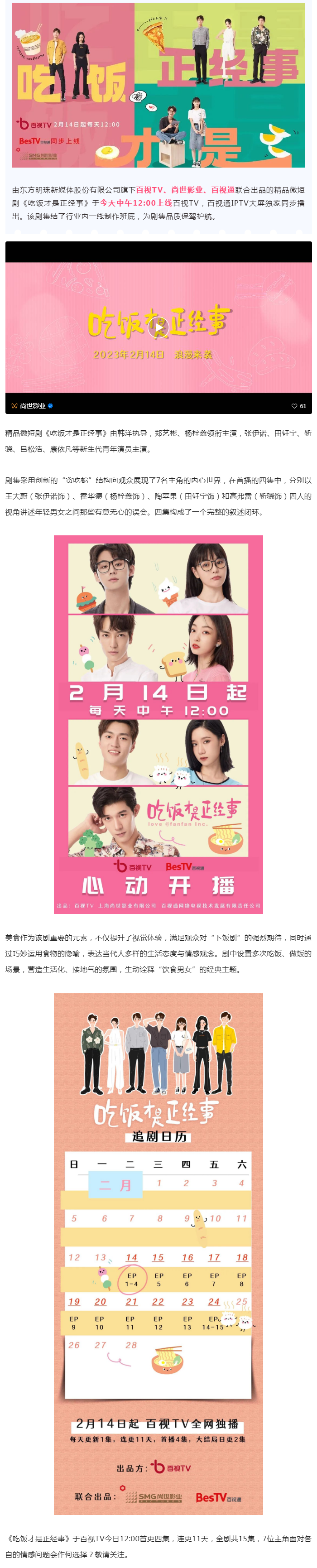 心动开播!微短剧《吃饭才是正经事》登陆百视TV、百视通