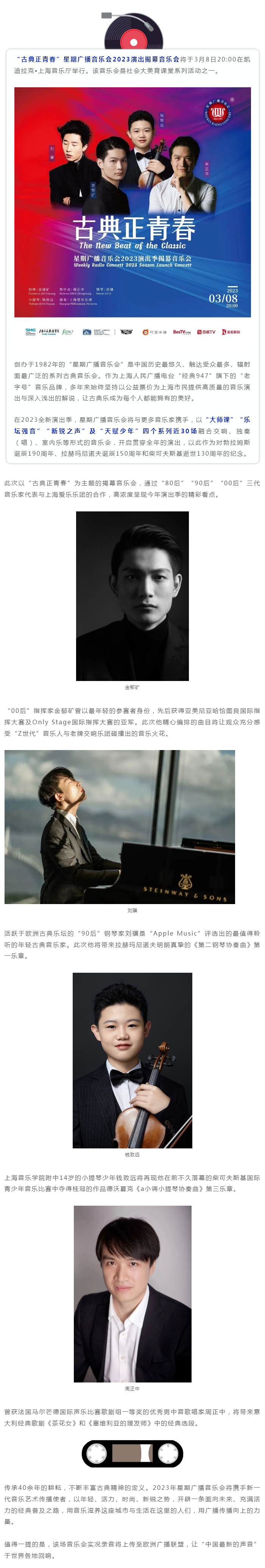 古典正青春,星期广播音乐会2023演出揭幕音乐会3月8日举行
