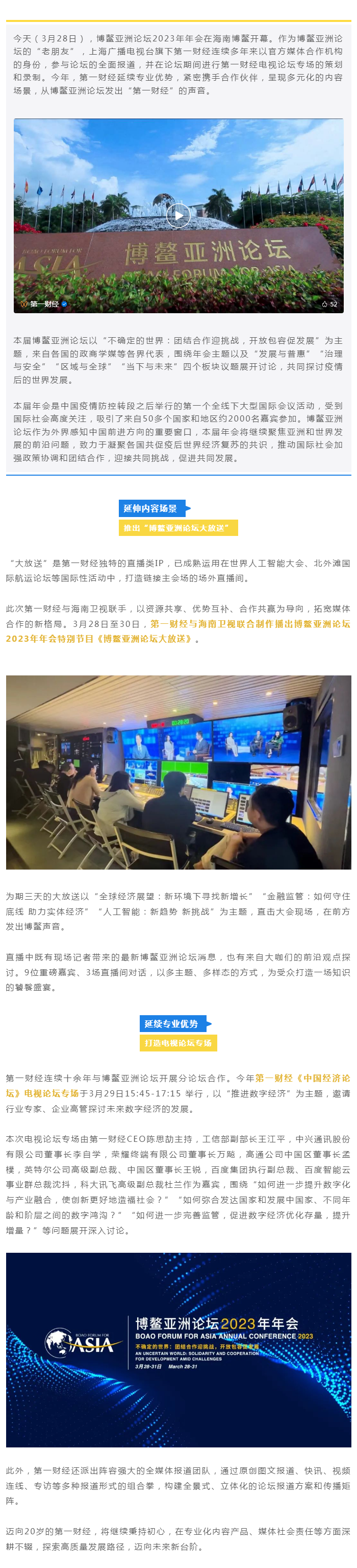 博鳌亚洲论坛今开幕 第一财经多元内容场景发出“博鳌声音”