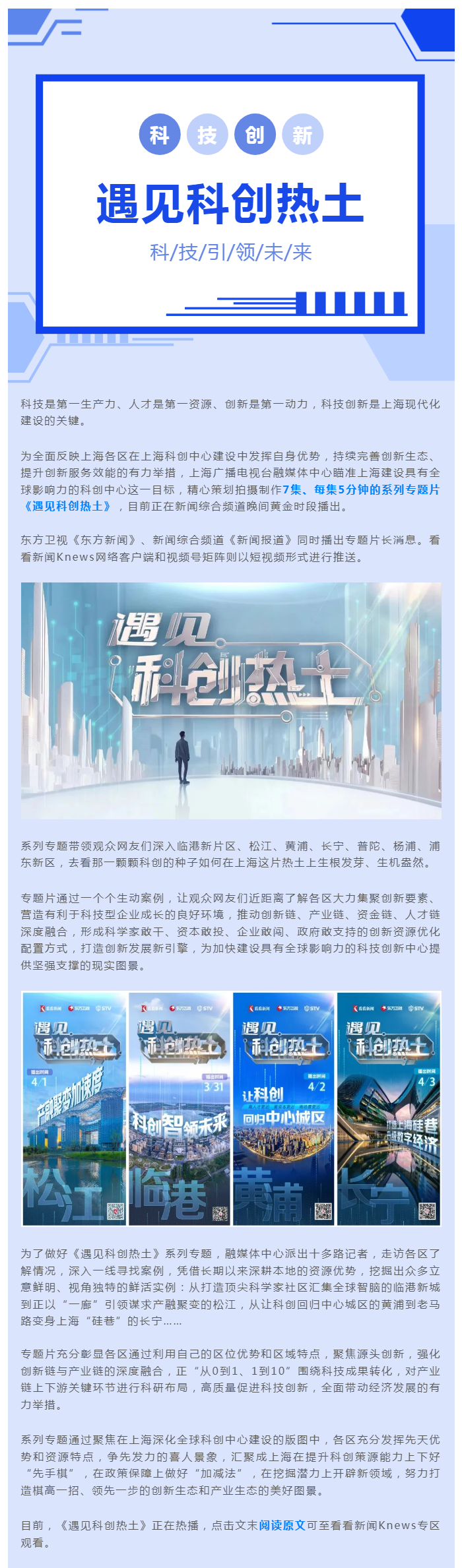 展现上海科创图景,上海广播电视台推出《遇见科创热土》系列专题