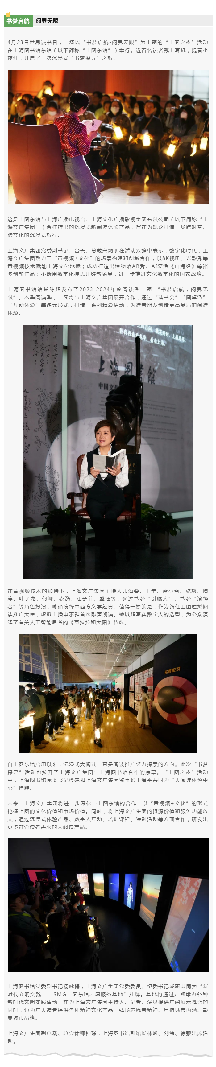 打造沉浸式新阅读体验,上图东馆携手上海文广集团举办“上图之夜”