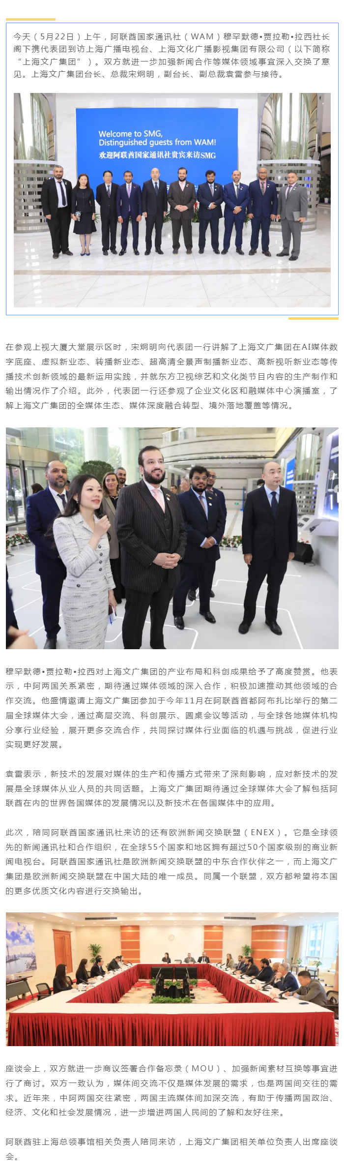 阿联酋国家通讯社与上海文广集团深入合作助力两国文化传播