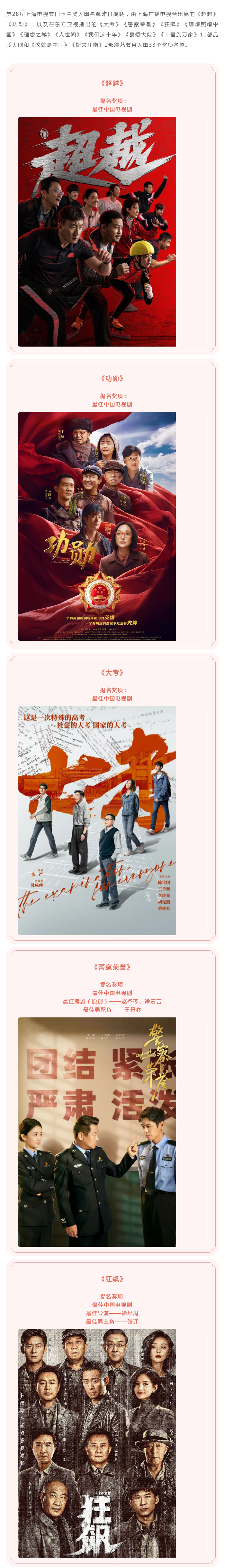 上海广播电视台出品和播出剧集、综艺获33项白玉兰提名
