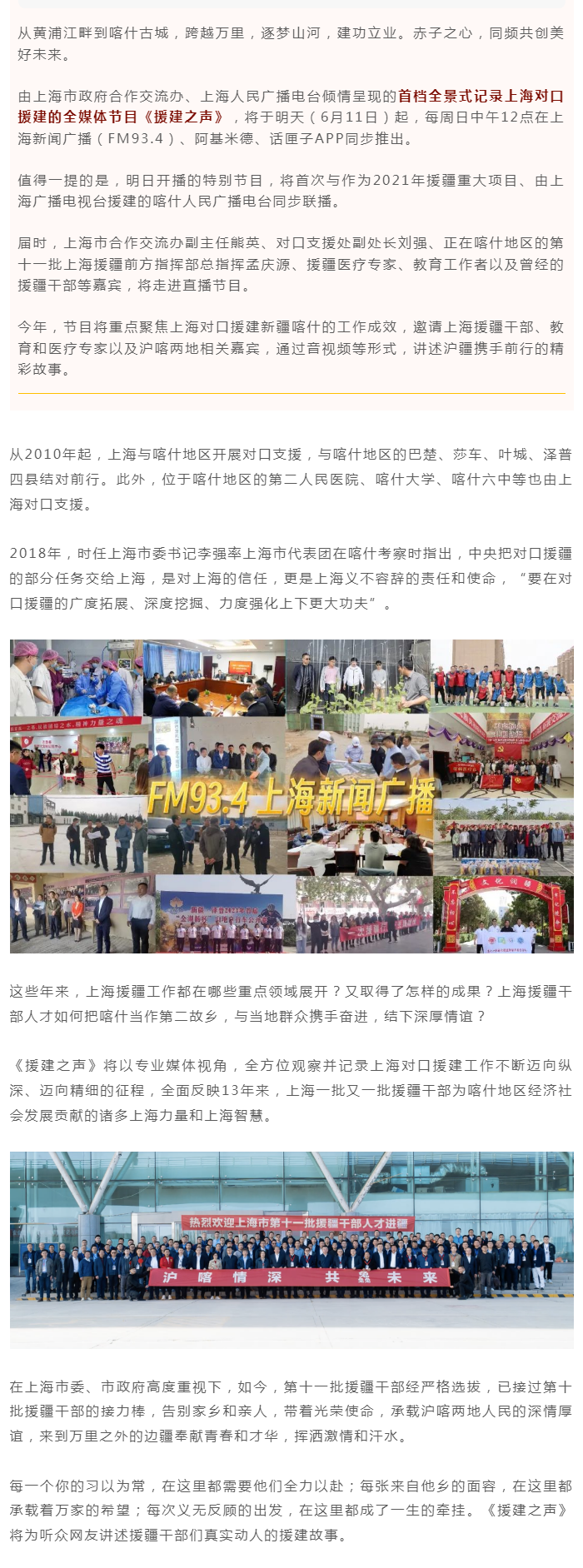 携手喀什人民广播电台同步联播,上海电台《援建之声》开播