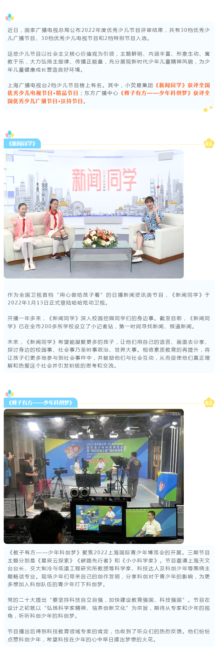 上海广播电视台2档节目获评国家广播电视总局优秀少儿节目