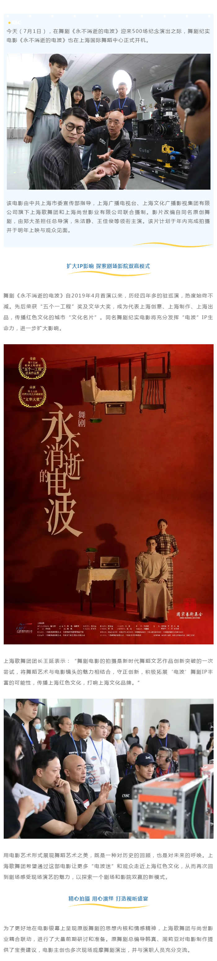 舞剧《永不消逝的电波》迎500场纪念演出 同名舞剧纪实电影火热开拍