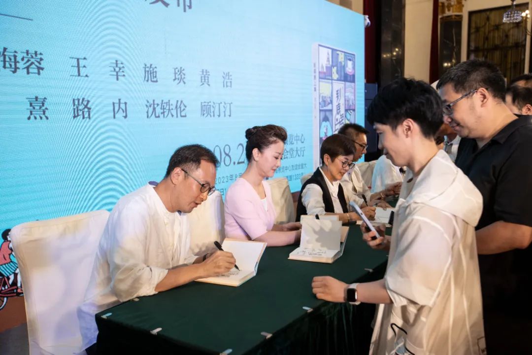 发布会后,上海广播电视台主播印海蓉、王幸、施琰、黄浩、臧熹,作家路内、沈轶伦,青年艺术家顾汀汀为读者现场签售。