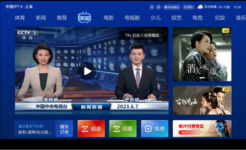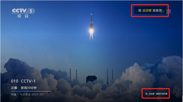 更新升级后开机全屏播放 CCTV-1直播频道示意图