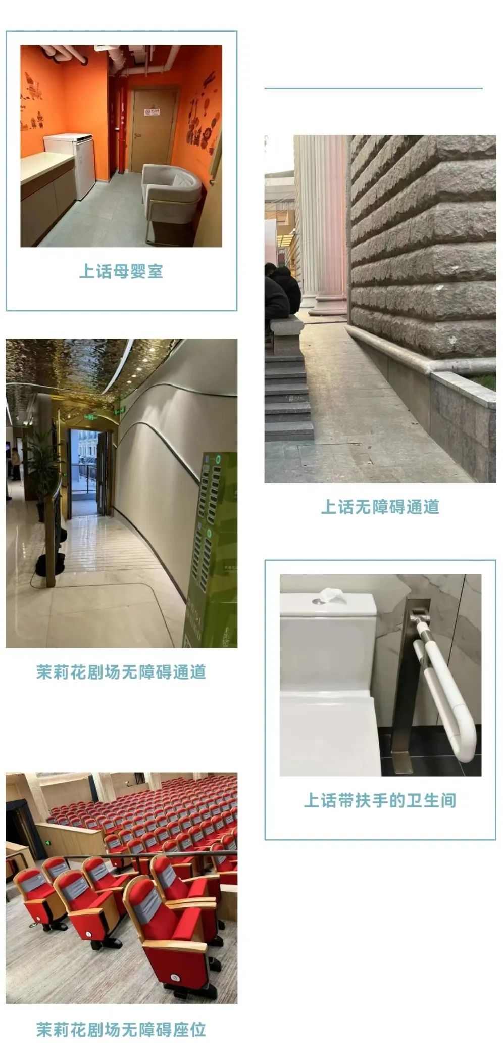 另一方面,伴随话剧大厦的修葺,剧场无障碍设施进行升级和完善。同时,上话旗下茉莉花剧场在改建初期就优先考虑无障碍通道建设,一楼设无障碍通道从入口直通剧场内部。