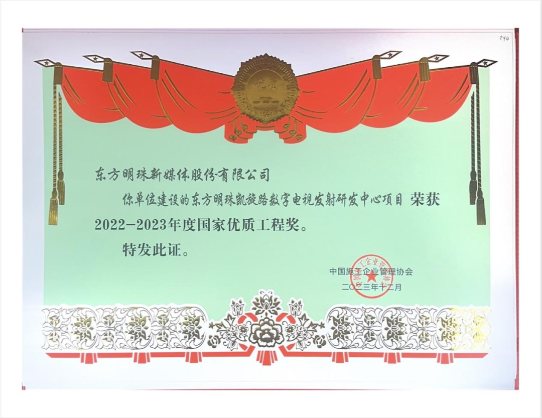 日前,东方明珠凯旋中心(原名:东方明珠凯旋路数字电视发射研发中心项目)荣获“国家优质工程奖”。这是我国工程建设领域设立最早、规格最高,跨行业、跨专业的国家级质量奖。