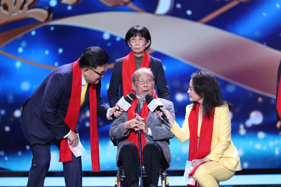 经过晚会导演组反复沟通邀约,作为“天使知音”沙龙的发起人、孤独症患儿音乐教育的探索者、现年99岁的指挥家曹鹏也来到了晚会现场,为“蓝天下的至爱”带来了他的祝福。