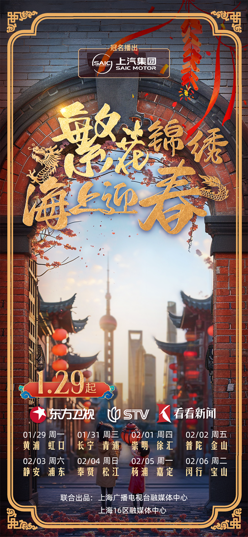 龙年春节将至,为呈现申城迎接新春的浓浓年味,由上海广播电视台融媒体中心携手各区融媒体中心联合摄制的《繁花锦绣 海上迎春》春节特别节目于1月29日起在东方卫视《东方新闻》和新闻综合频道《新闻报道》等各档新闻栏目播出,通过电视屏幕展现人民城市的新春景致和民俗文化。看看新闻Knews新媒体矩阵、ShanghaiEye国际传播矩阵、各区融媒体矩阵也将推出相关节目内容,与海内外观众同赏“繁花锦绣”、共赴“海上迎春”。