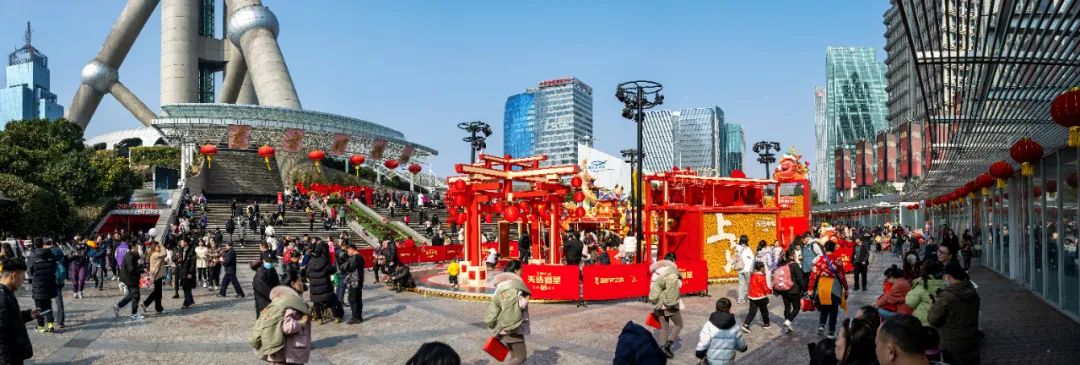 在新春佳节期间,东方绿舟通过“天龙”“地龙”“水龙”的“三龙”非遗文化展示和充满年味儿的非遗市集打造,营造出红火、欢腾的节日氛围。红彤彤的龙形装饰、祈福墙、福鼓、蜂巢塔的好彩龙得到了不少游客的喜爱。年初一至初七,东方绿舟累计入园人数近3.5万人次,同比增幅48.41%。