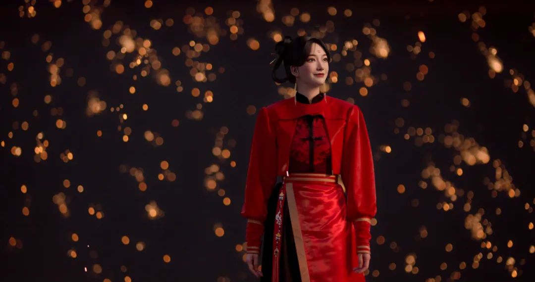 此次东方卫视中心生产制作中心制作部和后期部全程参与了东方嫒在东方卫视春晚上的节目妆造、舞台设计和分镜头脚本设计等工作。节目中融合真人与虚拟人的表演形式是整个流程里极具挑战的部分,根据档期时间安排,制作部提前和导演组确认形象造型、场景资产和分镜头脚本,后期需要“中之人”在动捕棚内演绎表情和台词,为制作团队提供了更全面的制作和渲染参考,并得以呈现最佳效果。