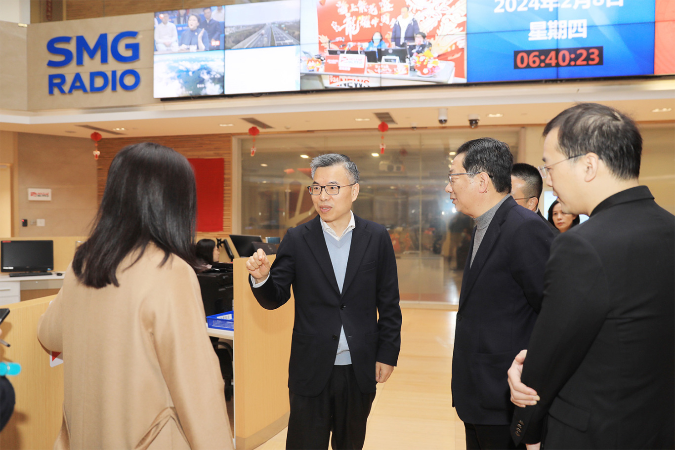 方世忠还走进上海新闻广播《990 早新闻》、长三角之声《早安长三角》、第一财经广播《财经早点》、上海交通广播《欢乐早高峰》直播间,了解播音员、监制、导播、技术人员的工作操作流程,仔细查看新闻播报串联单和直播室管理规定。