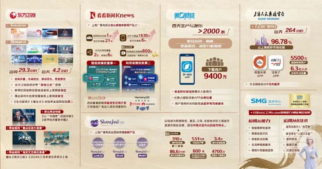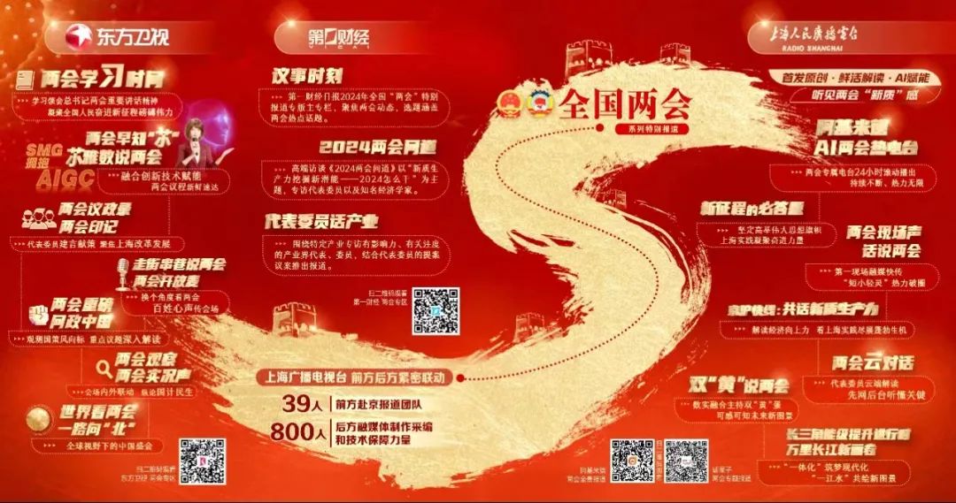 今年全国两会期间,上海广播电视台坚持新闻立台、文化兴台、融合强台,精锐尽出,组建39人的前方联合报道团队和有800人参与的后方编辑策划团队,精心策划、全力以赴,充分发挥全媒体传播优势,积极采用AIGC新技术赋能报道,全方位呈现两会盛况和代表委员履职风采,营造团结奋进的热烈氛围,充分释放媒体新质生产力,全力打响上海广播电视台两会报道品牌。
