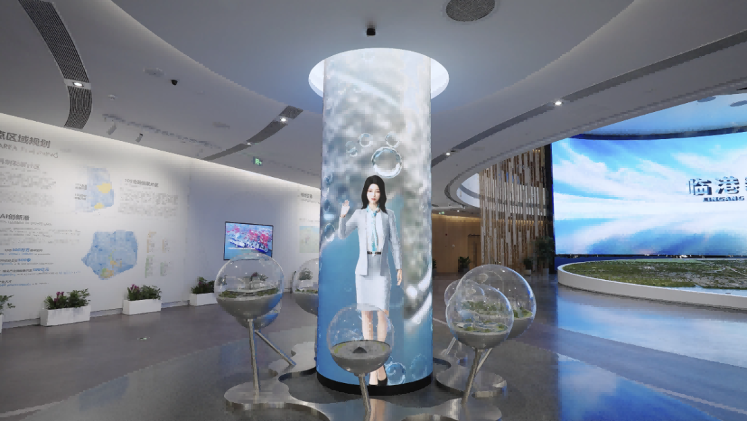 而这背后正有赖于幻维数码以强大的数字多媒体创制能力焕新展示模式。基于幻维数码在数字人领域的宝贵经验,特别为展厅设计了数字人讲解员贯通全馆;同时打造“城市漫步”与“全景临港”两大沉浸式交互展项,迅速聚集人气,使其成为网红打卡地。