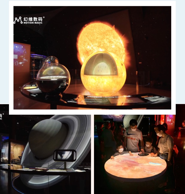 在这个常年游人如织的热门场馆里,150余件互动展项中幻维数码参与策划制作了其中44项。从“脑洞大开”提出假设的《假如剧场》到模拟前往太阳、月球、火星、木星,浏览整个太阳系大家庭,幻维数码以媒体技术结合体感互动、数据可视化、增强现实(AR)等形式,让观众沉浸到探索星辰大海的科技之旅中。