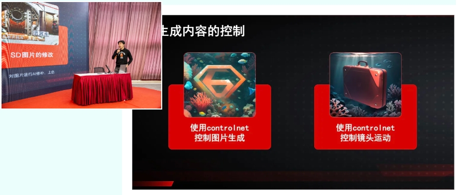 “AIGC的入场并不意味着数字产品可以一键到位,背后仍需要我们内容生产者的不懈努力。如何正视AI?将它们视为生产力工具,学习,然后驾驭。”在陈彦池带来的《AIGC技术重塑内容生产链条》中,他展示了Al技术在内容生产领域的工业化应用并深入探讨了AIGC技术如何改变传统的内容生产方式,为行业带来新的发展机遇。“我们不是打个提示词,然后等待奇迹。在内容生产领域,AI的工业化应用需要大胆的探索和精准的控制。”