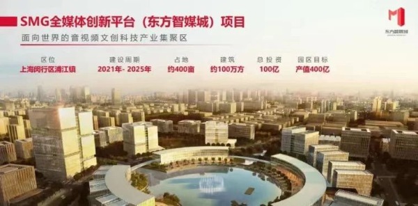 位于闵行区浦江镇的“东方智媒城”,由上海广播电视台旗下东方明珠新媒体股份有限公司与临港集团旗下临港浦江公司共同打造。