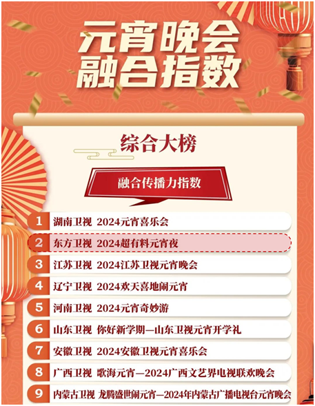 「晚会新突破」:东方春晚、元宵融合指数排名前二