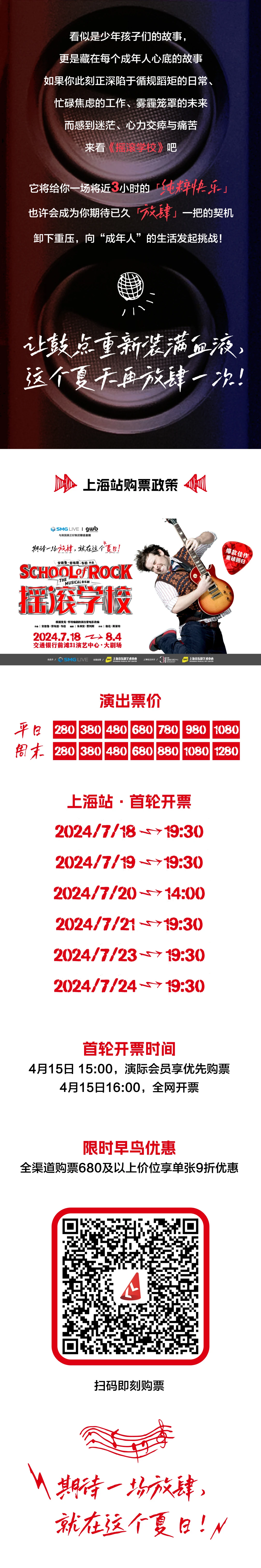 百老汇摇滚音乐剧《摇滚学校》将于今年七月重返申城。