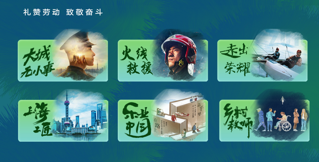 纪实人文频道打通白天播出版面,精选《幸福的模样》第二季、《行进中的中国》第二季、《万桥飞架——山水间的人类奇迹》等多部国产优质纪录片,向劳动者致敬。