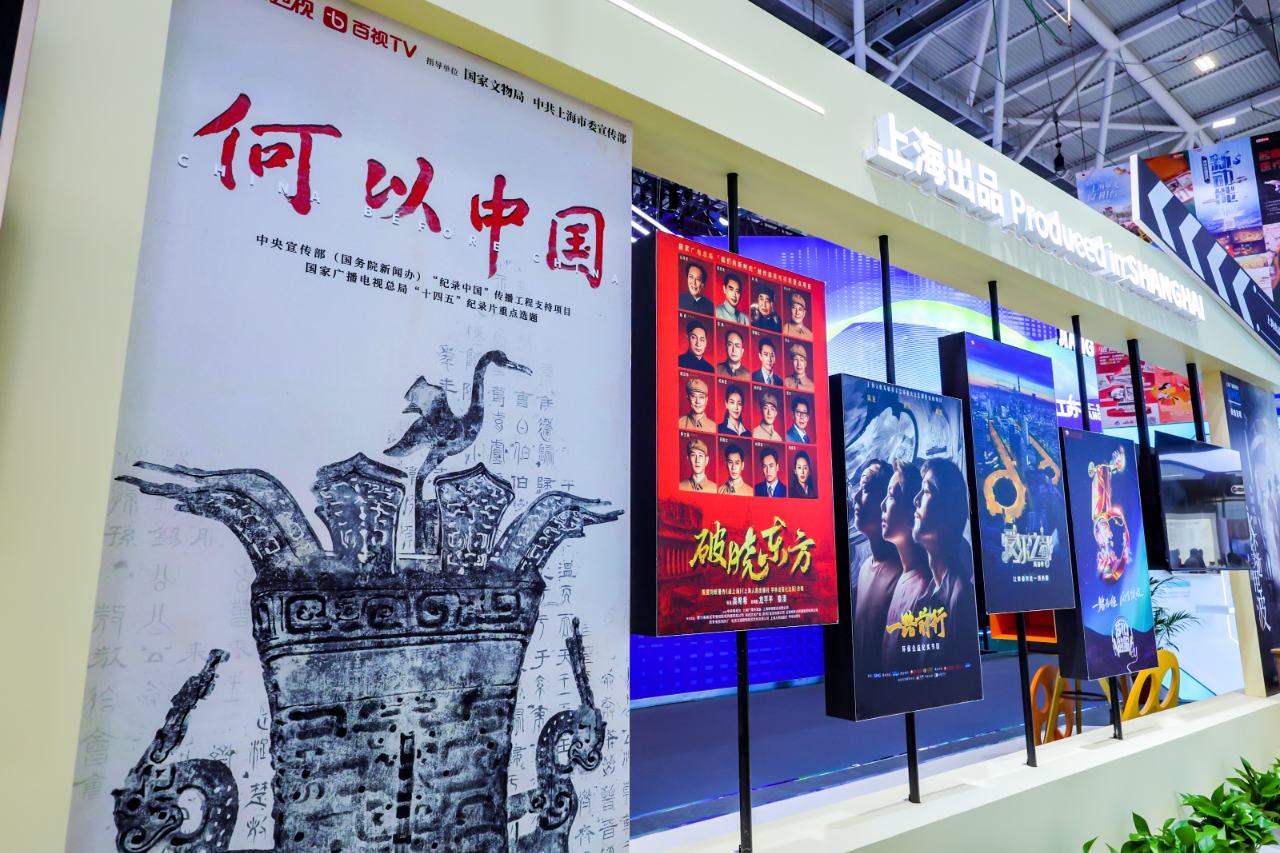 在文博会“上海出品”展区,展示了一批由上海广播电视台出品制作,具有大都市气质、中国式审美的精品视听内容,包括即将上映的舞剧电影《永不消逝的电波》、大型考古纪录片《何以中国》、重大革命题材电视剧《破晓东方》、 大型环保公益纪实节目《一路前行》 、全产业链音乐剧推广节目《爱乐之都》,以及海外模式输出案例《我们的歌》等,充分体现上海广播电视台强大的多元内容制作能力,以及用视听作品弘扬上海城市精神品格、传播当代中国价值观念、反映全人类共同价值追求的能力。