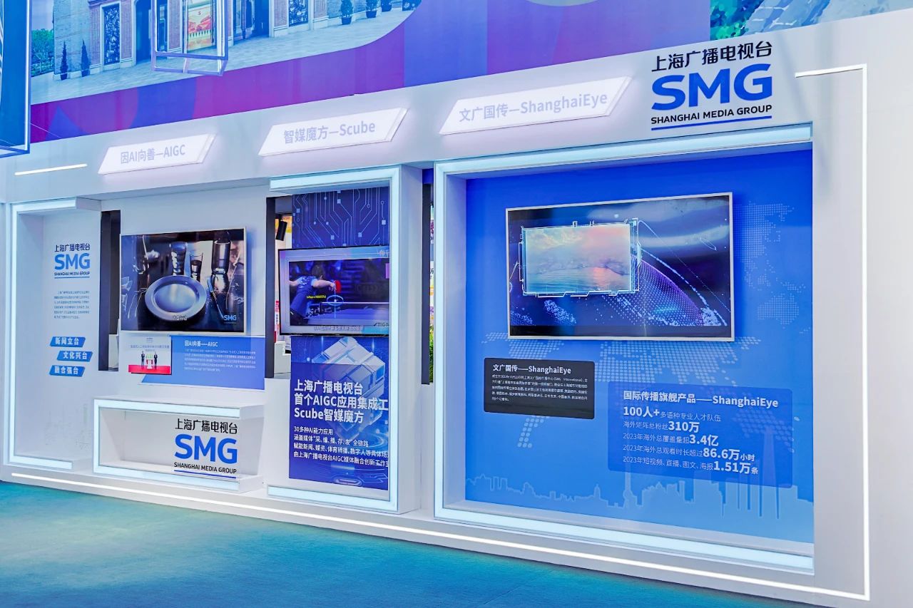 上海广播电视台于2023年10月23日成立的上海文广国际传播中心(SMG International)也在本届文博会上以宣传片形式亮相。中心致力于打造“上海城市形象国际传播”的第一视频窗口,建设与上海城市功能相匹配的国际传播立体生态圈,构建“立足上海、面向全国、放眼世界”的开阔新闻视野和全球重大新闻事件的快速反应机制。